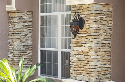 Stone - (natural or manufactured) applied over vertical surfaces as a cosmetic veneer decorative (architectural accent).